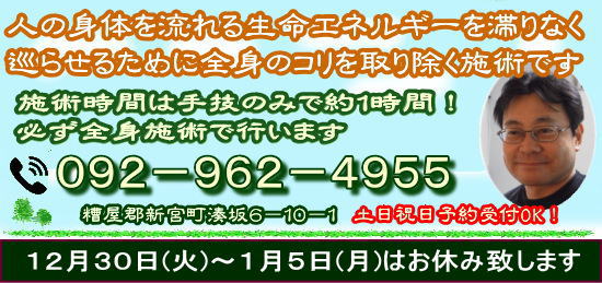 - また、『こり』を取り除くことは疲労を回復させることにも繋がります。